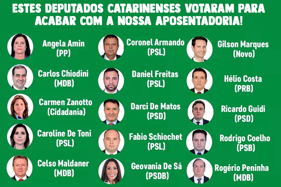 Na coluna da esquerda, estão os mais de 260 deputados que são favoráveis ao fim da aposentadoria. Na coluna da direita, na cor verde, estão os parlamentares que são a favor da sua aposentadoria. Em laranja, na lista central, estão os indecisos.