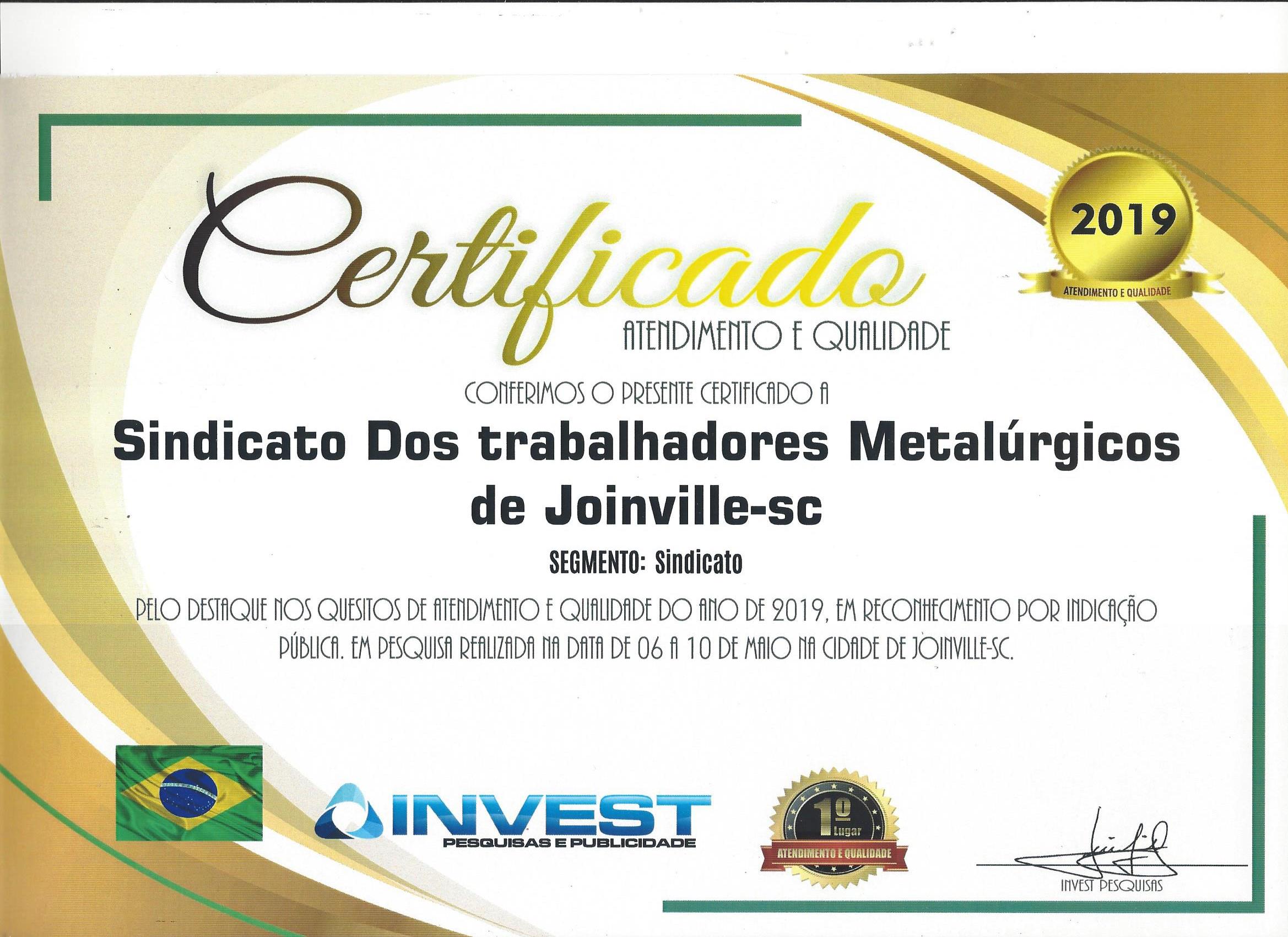 Mais uma vez o Sindicato dos Metalúrgicos foi reconhecido por dois grandes institutos de pesquisa como o sindicato com melhor qualidade em atendimento e serviços: a Excellence e a Invest, duas renomadas empresas de pesquisas e publicidade.