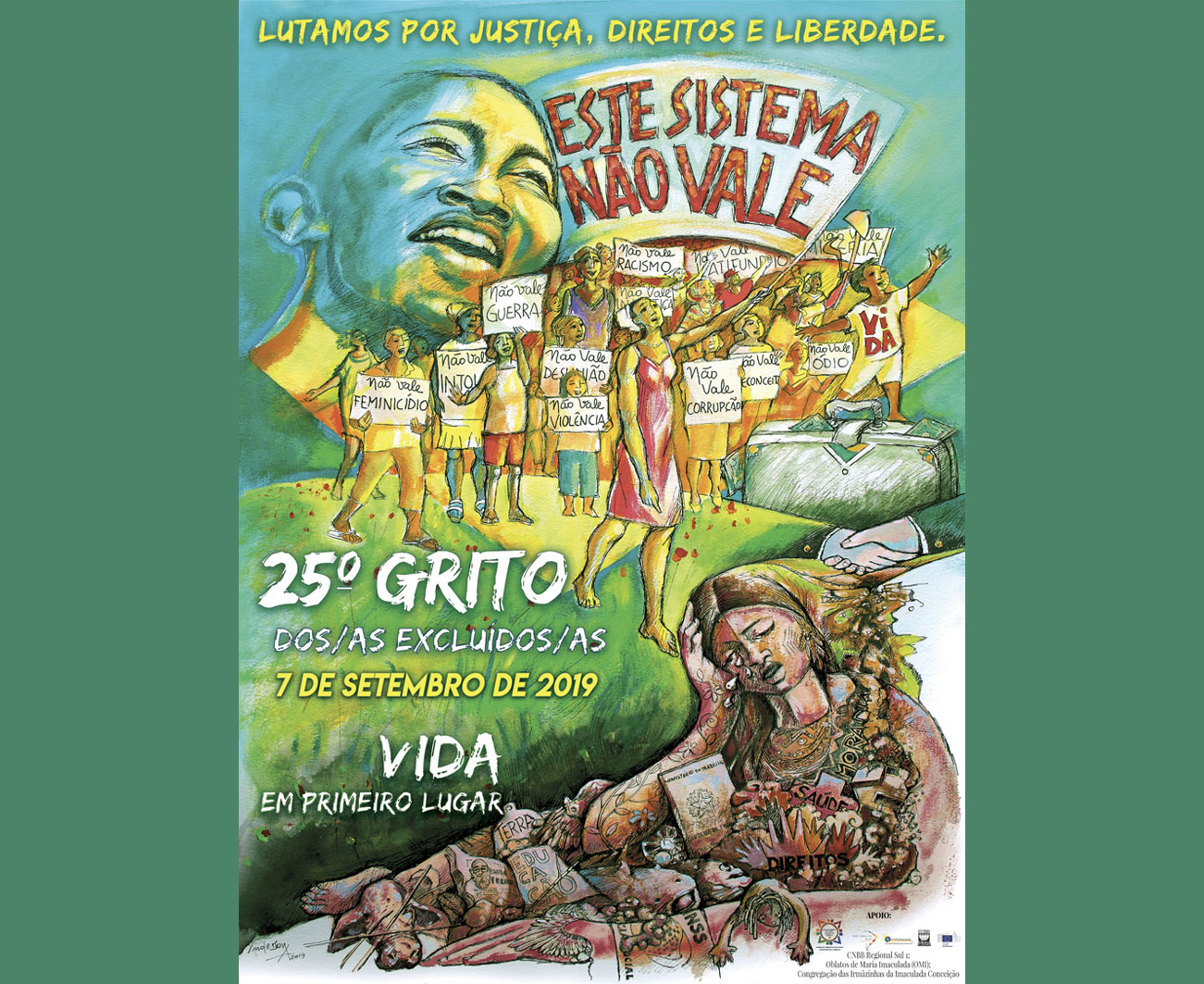 O 25º Grito dos/as Excluídos/as trás para o conjunto de manifestações populares a denúncia de que este sistema não vale: lutamos por justiça, direitos e liberdade. Grito dos/as Excluídos/as é um conjunto de manifestações populares, que ocorrem no Brasil desde 1995, que se encerram sempre no Dia da Independência do Brasil. Nasceu dentro da igreja durante uma das campanhas da fraternidade. É uma ação pastoral da igreja em saída, que faz a opção pelos pobres, que denuncia o sistema que oprime. Estas manifestações ecumênicas têm como objetivo abrir caminhos aos excluídos da sociedade, denunciar os mecanismos que promovem a exclusão e propor caminhos alternativos para uma sociedade mais inclusiva.