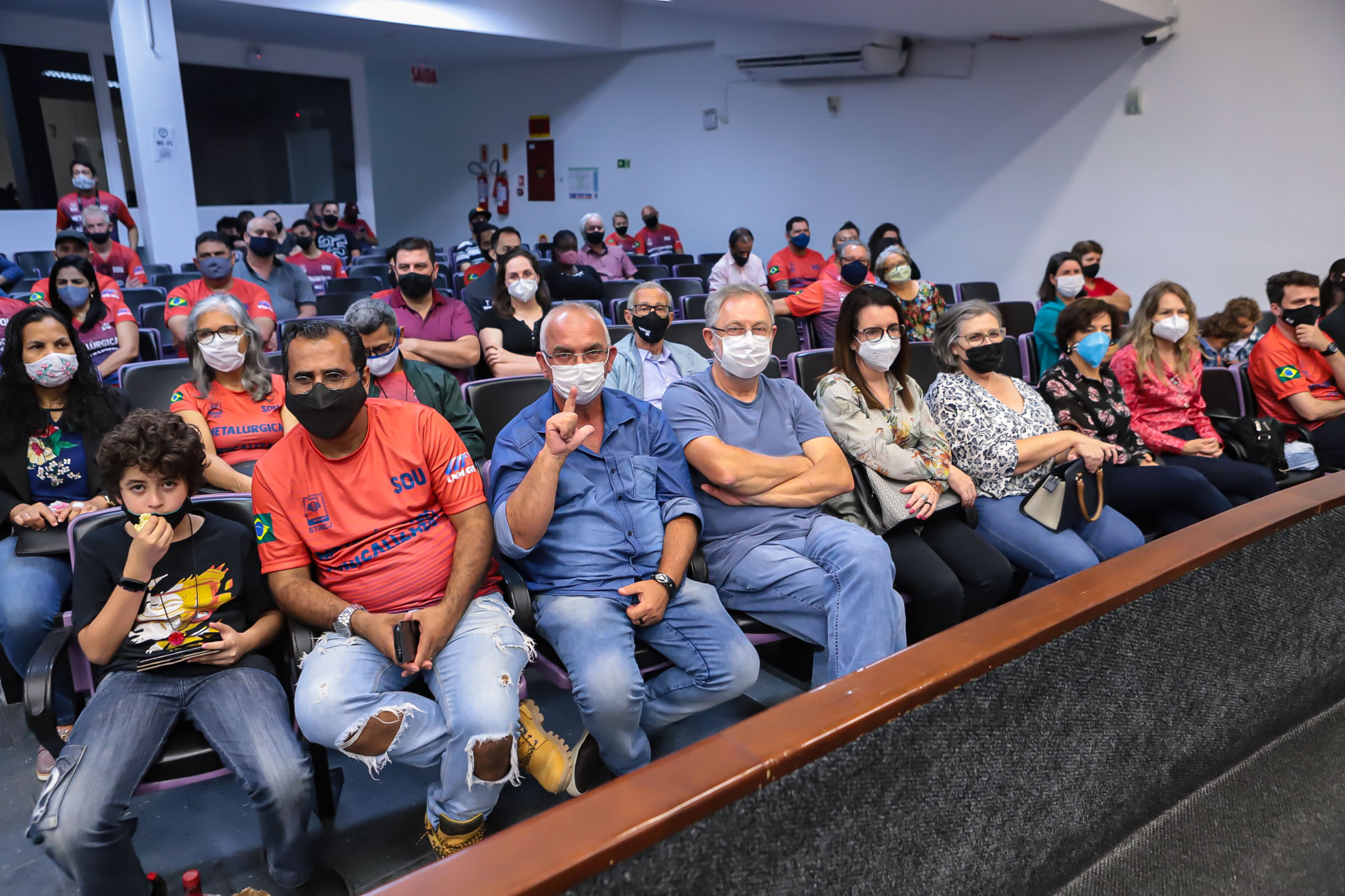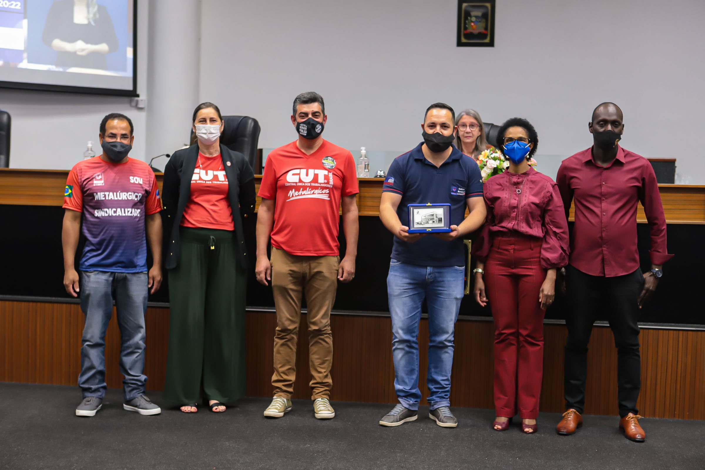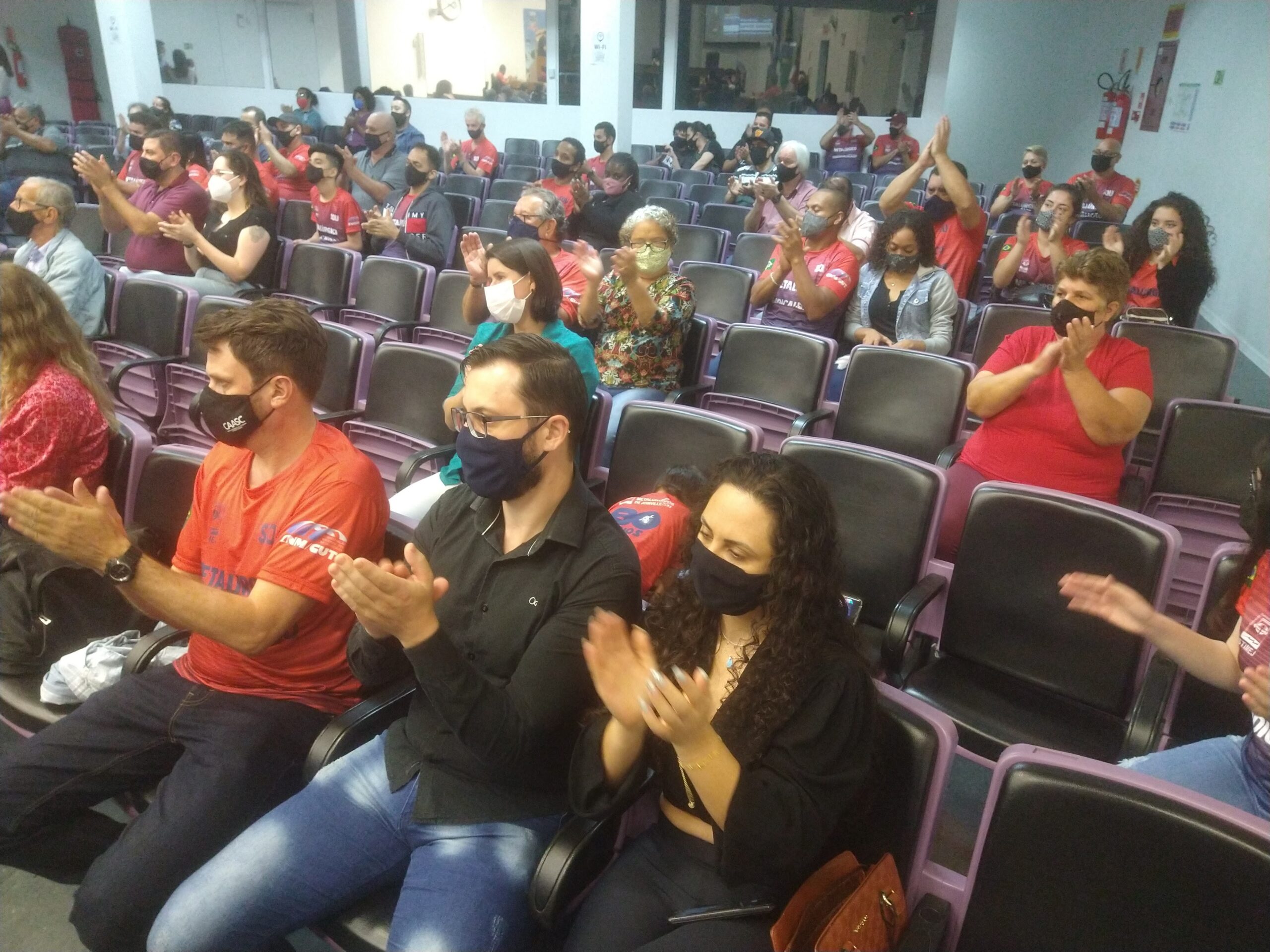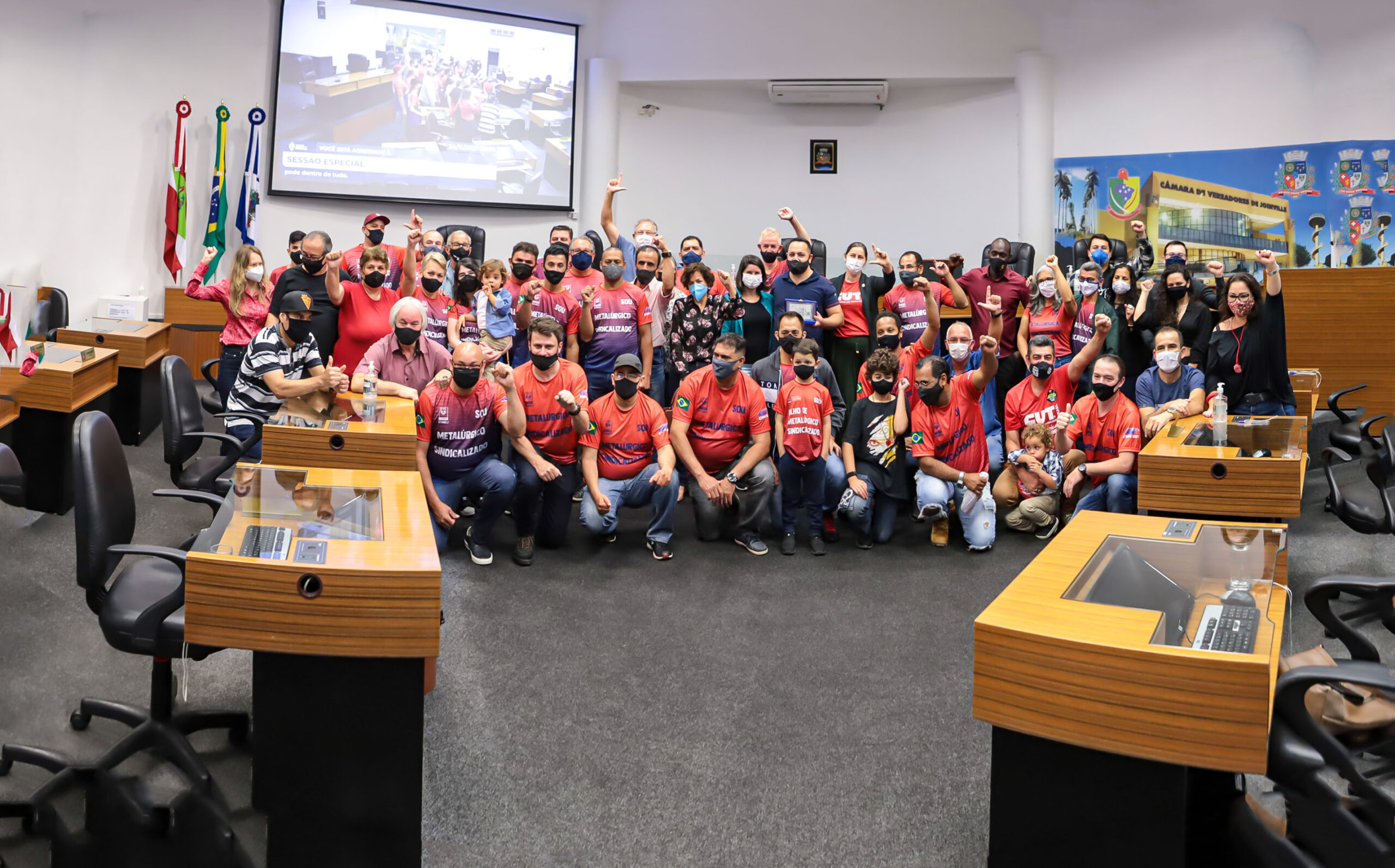 A Câmara de Vereadores realizou na noite de ontem (24) uma Sessão Especial em homenagem aos 90 anos do Sindicato dos Metalúrgicos de Joinville – (Stimej). A iniciativa da Vereadora Ana Lucia Martins (PT) enalteceu as 9 décadas de história, lutas e conquistas da categoria. Com a presença de diretores da entidade, trabalhadoras e trabalhadores de base, familiares, dirigentes de outras categorias e da presidenta da CUT/SC Anna Julia Rodrigues a noite foi de emoção e orgulho pela história grandiosa de um sindicato que nunca se furtou da luta em defesa da classe trabalhadora!