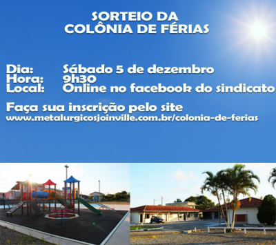 ATENÇÃO: Sorteio da Colônia de Férias será neste sábado! Para garantir sua inscrição siga as instruções!