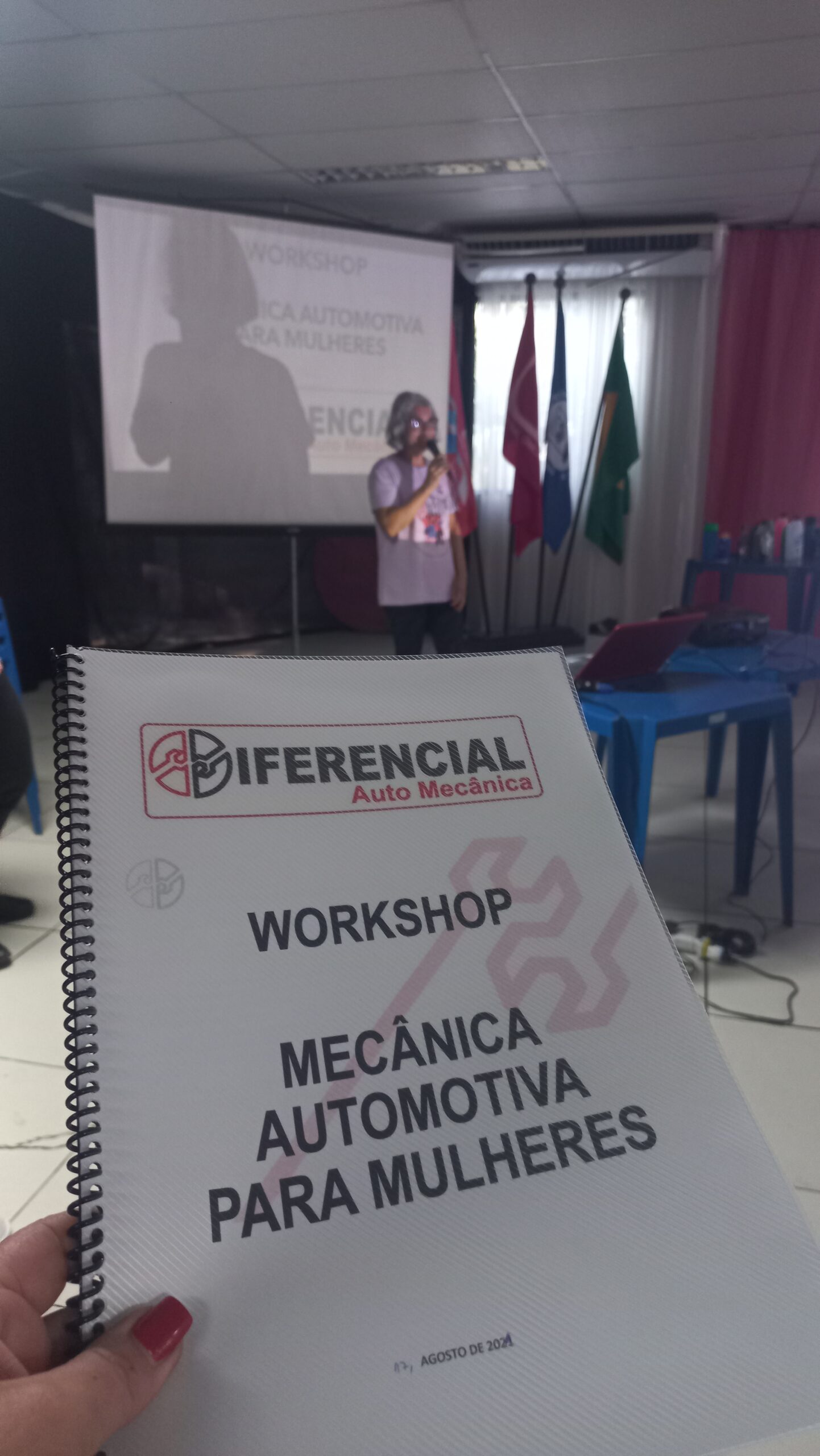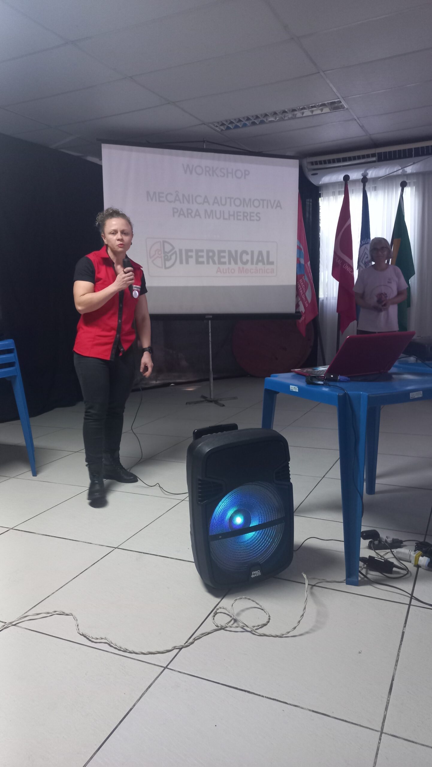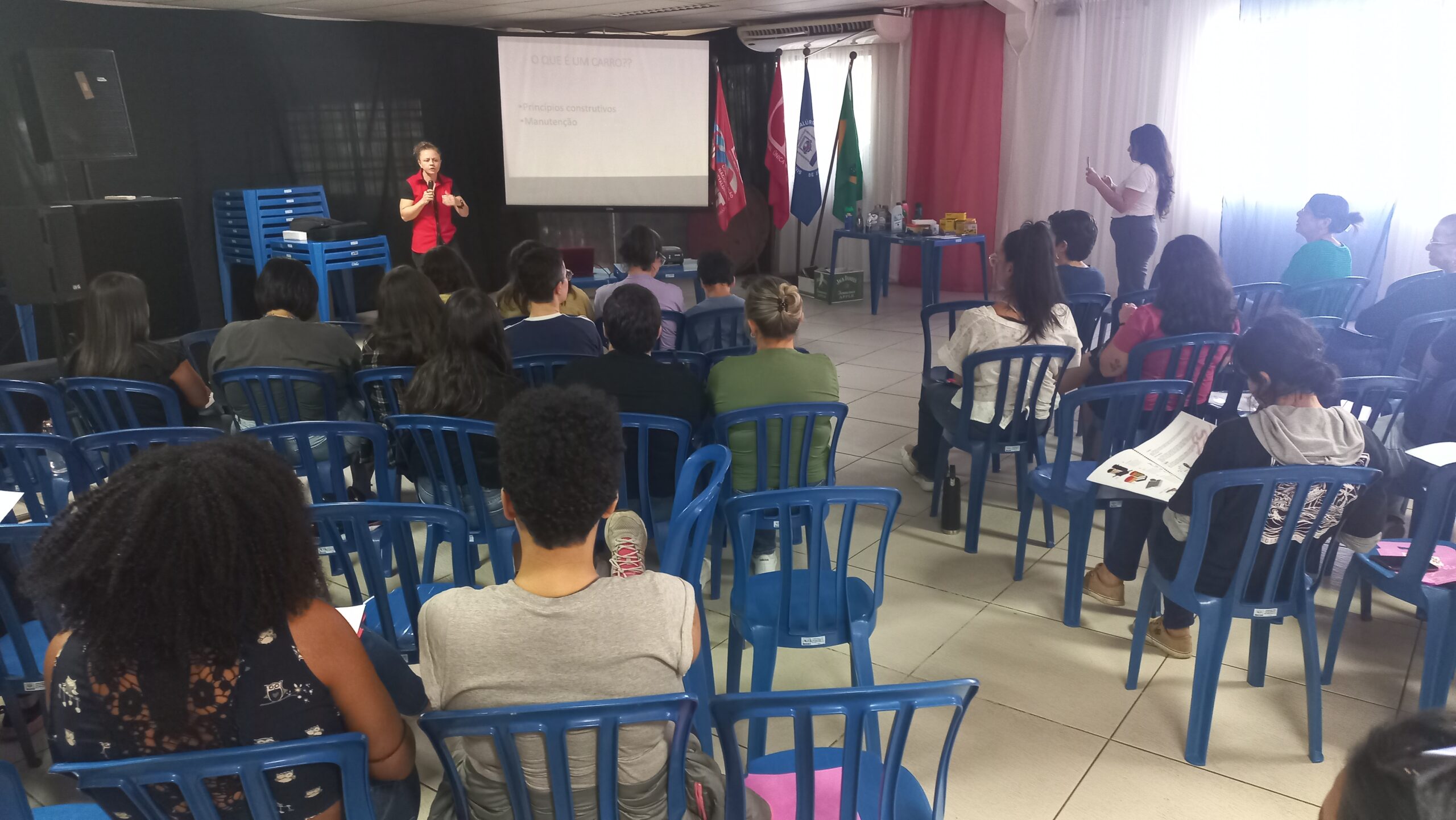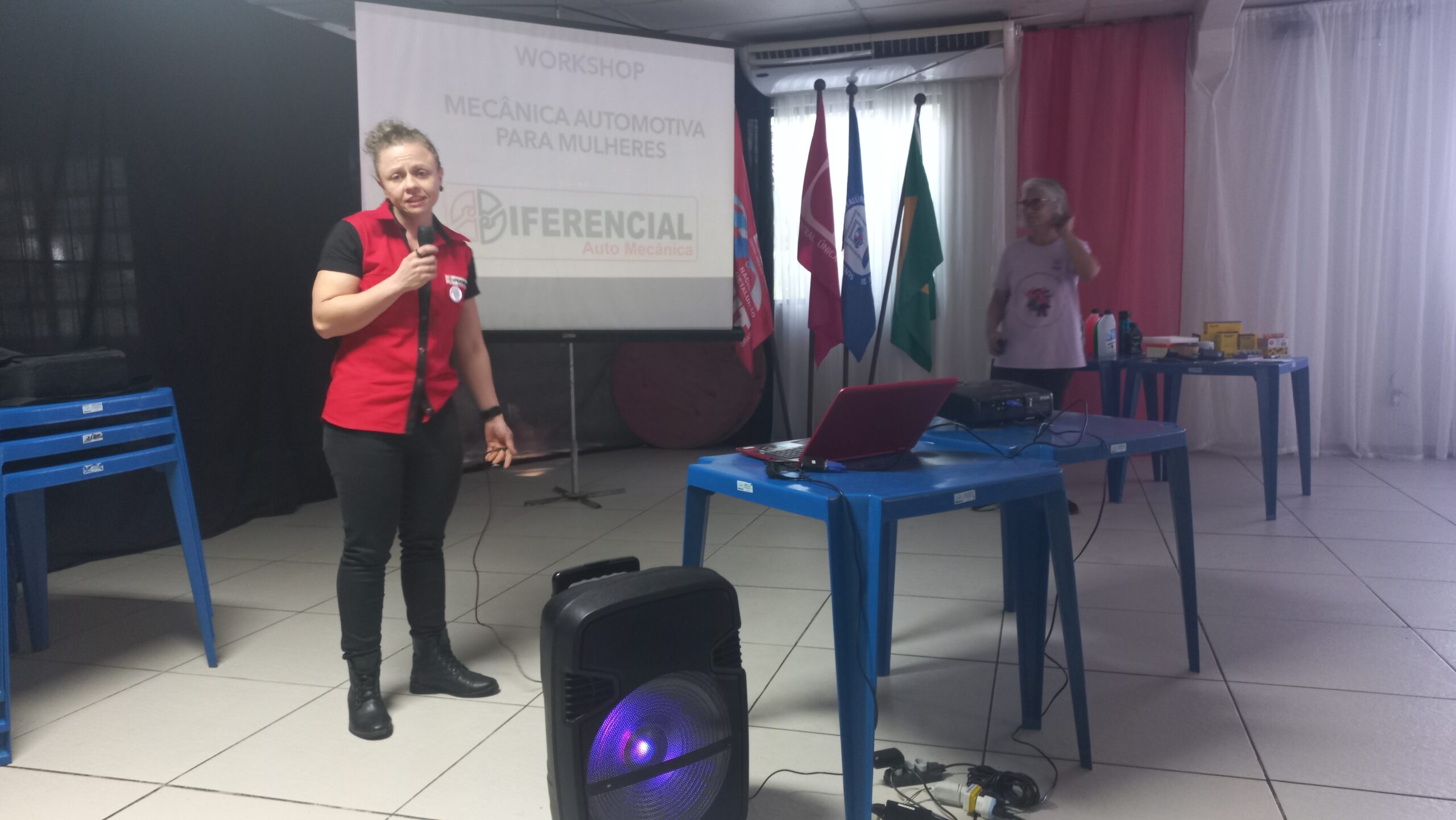 O encontro foi ministrado pela Mecânica/Professora automotiva e palestrante Carla Camargo que tem 17 anos de experiência com manutenção automotiva, é técnica em automobilística e professora de manutenção automotiva pelo SENAI. Formada em Automação Industrial, já trabalhou em grandes marcas como Fiat, Ford e Mitsubishi, atualmente presta serviços em sua própria oficina, a Diferencial Auto Mecânica.